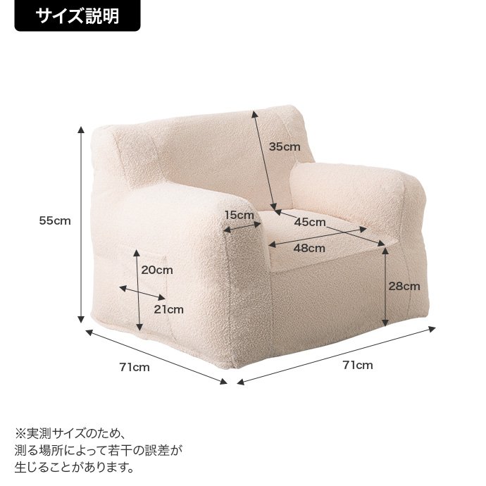 | 規格 | 【アウターカバー】ポリエステル 【インナーカバー】ポリエステル、コットン 【中材】発砲ビーズ(EPS) |