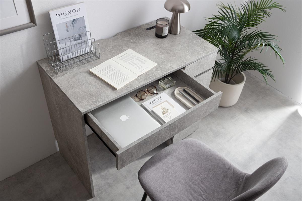デザインも機能性もスマートにまとまった引き出し付きコンパクトデスク