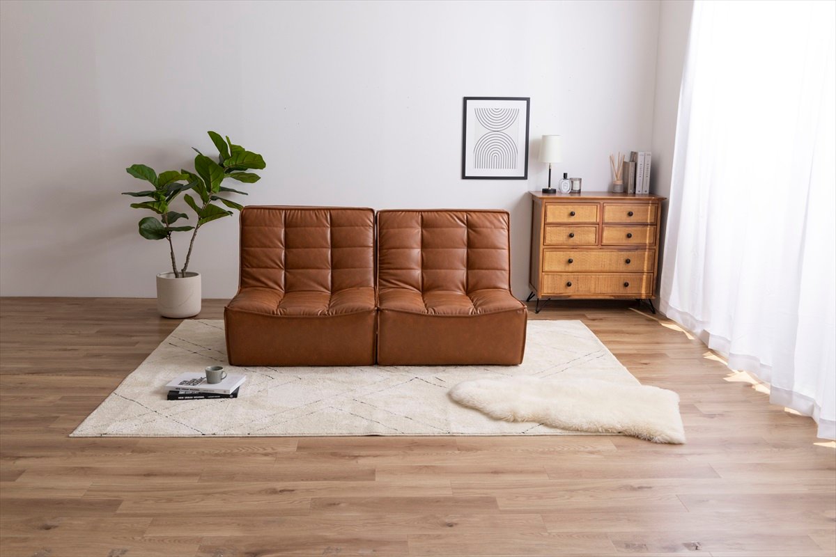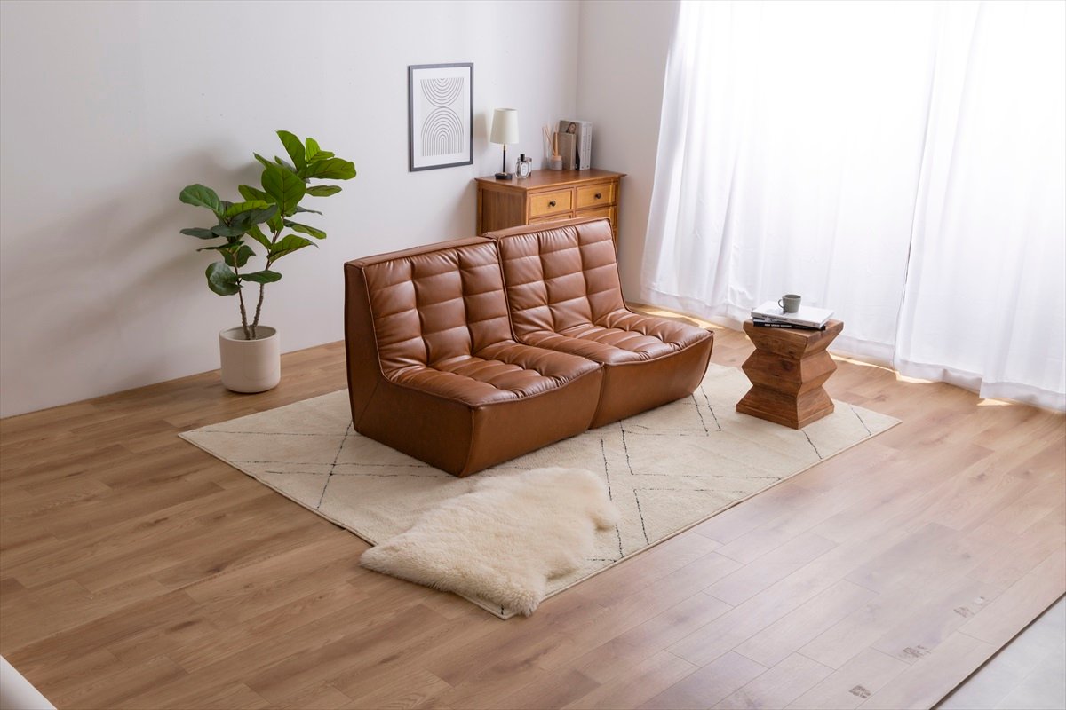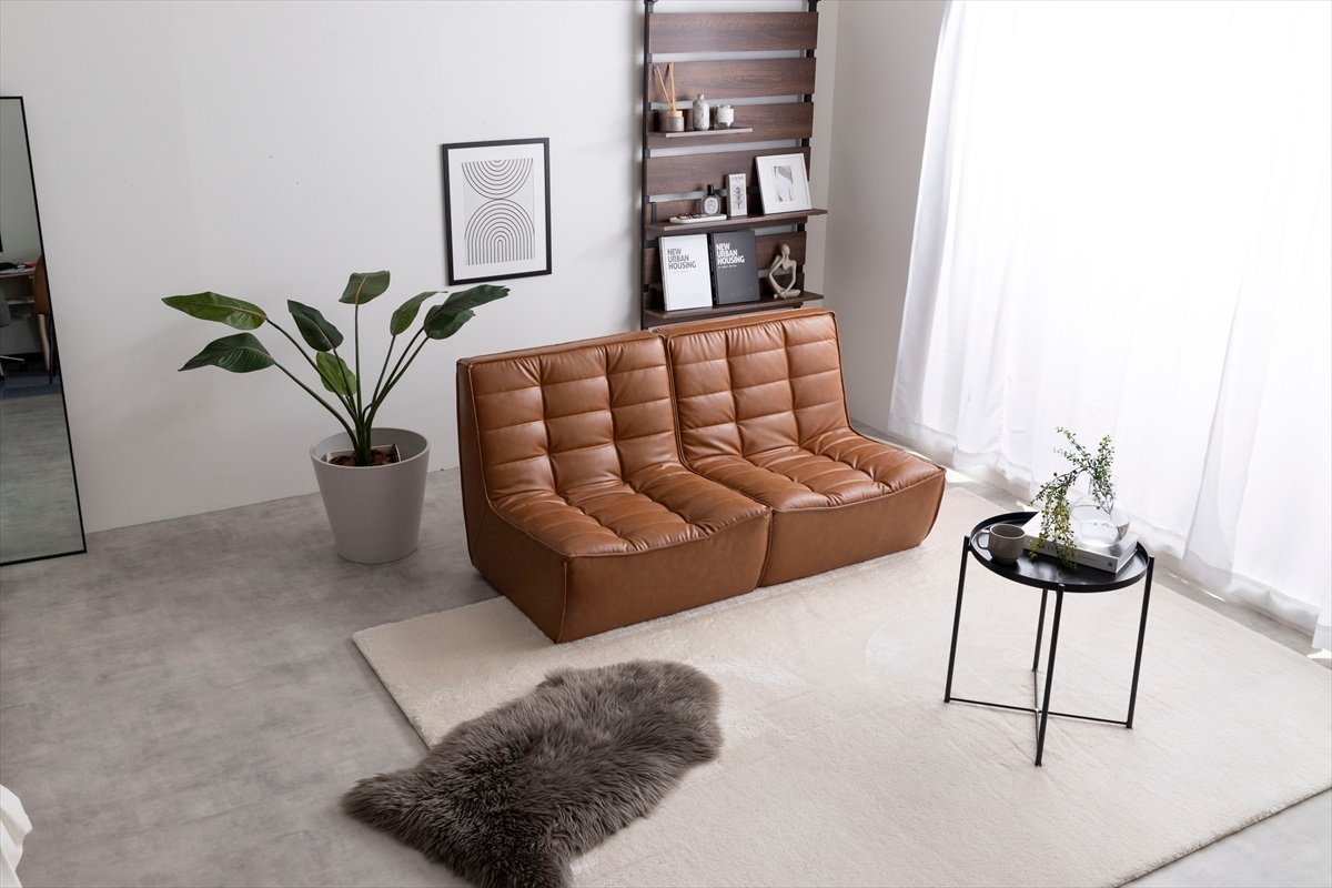 海外インテリアのような『Hank(ハンク)』PVCレザーソファ2脚