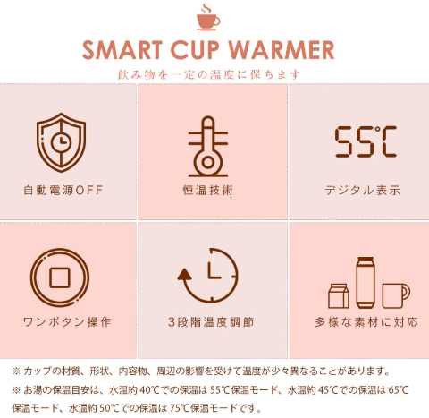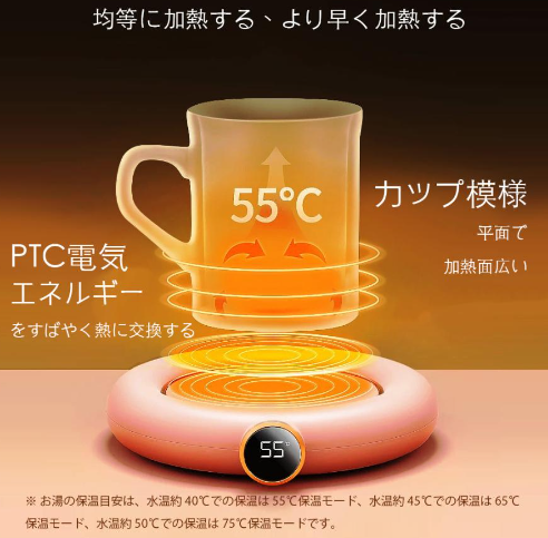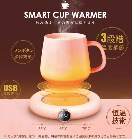 カップウォーマー 保温コースター USB式 恒温55℃ LCD表示 3段温度調整