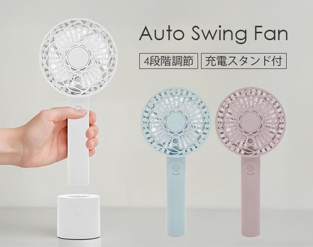 ★スタンドに置くだけでスイング&充電しながら送風が可能な手持ちファン!