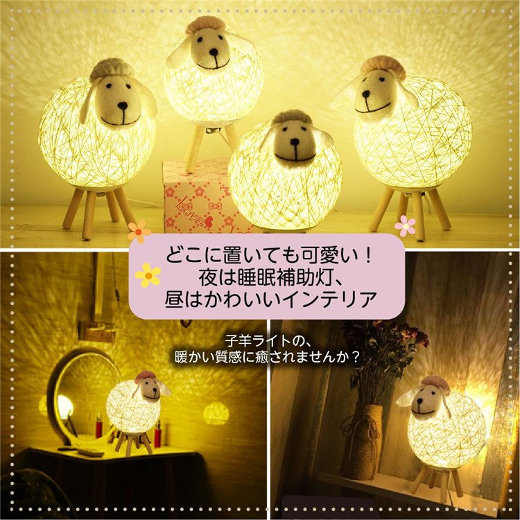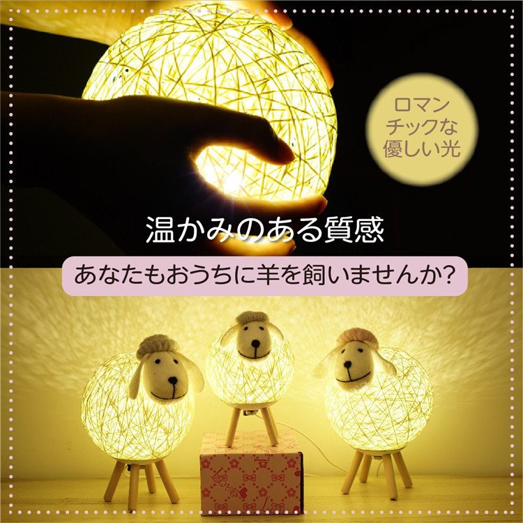 天然羊毛 LED USB電源 ランプ ラタン 編み インテリア 雑貨 テーブル ライト