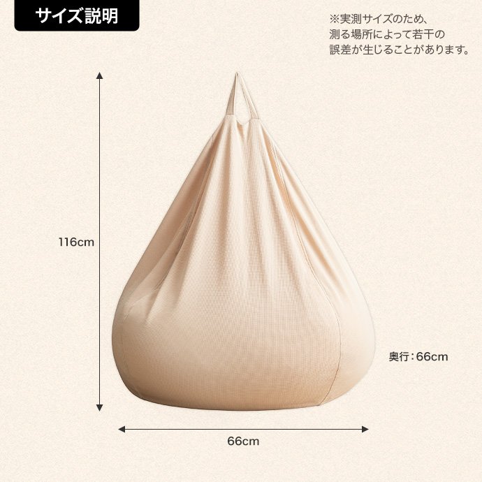| 規格 | 【アウターカバー】ポリエステル、綿 【インナーカバー】ポリエステル 【中材】発砲ビーズ(EPS) |