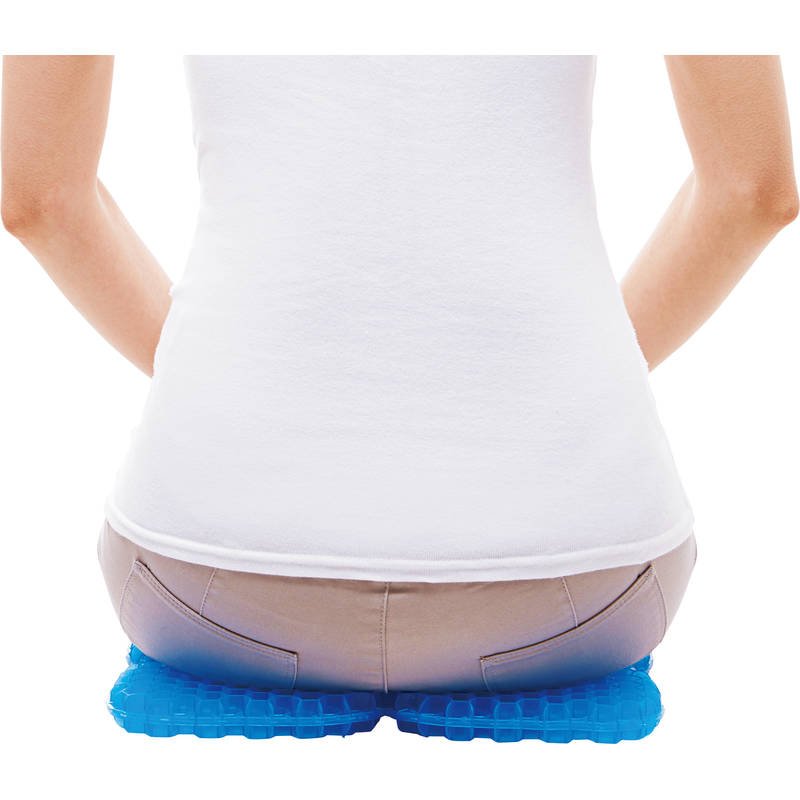 Wハニカムゲルで水に浮いたような座り心地。立体構造が沈み込みを防ぐため、長時間座ってもお尻が痛くなりにくい。折りたたんで、ボタンで留められる!持ち手がついているので持ち運びが便利!